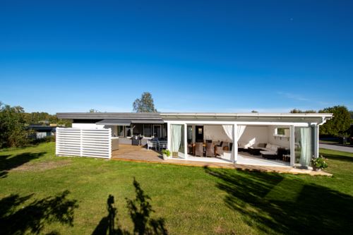 Nyanlagt soldäck med skönt spabad, två stora terrassmarkiser för skön skugga.